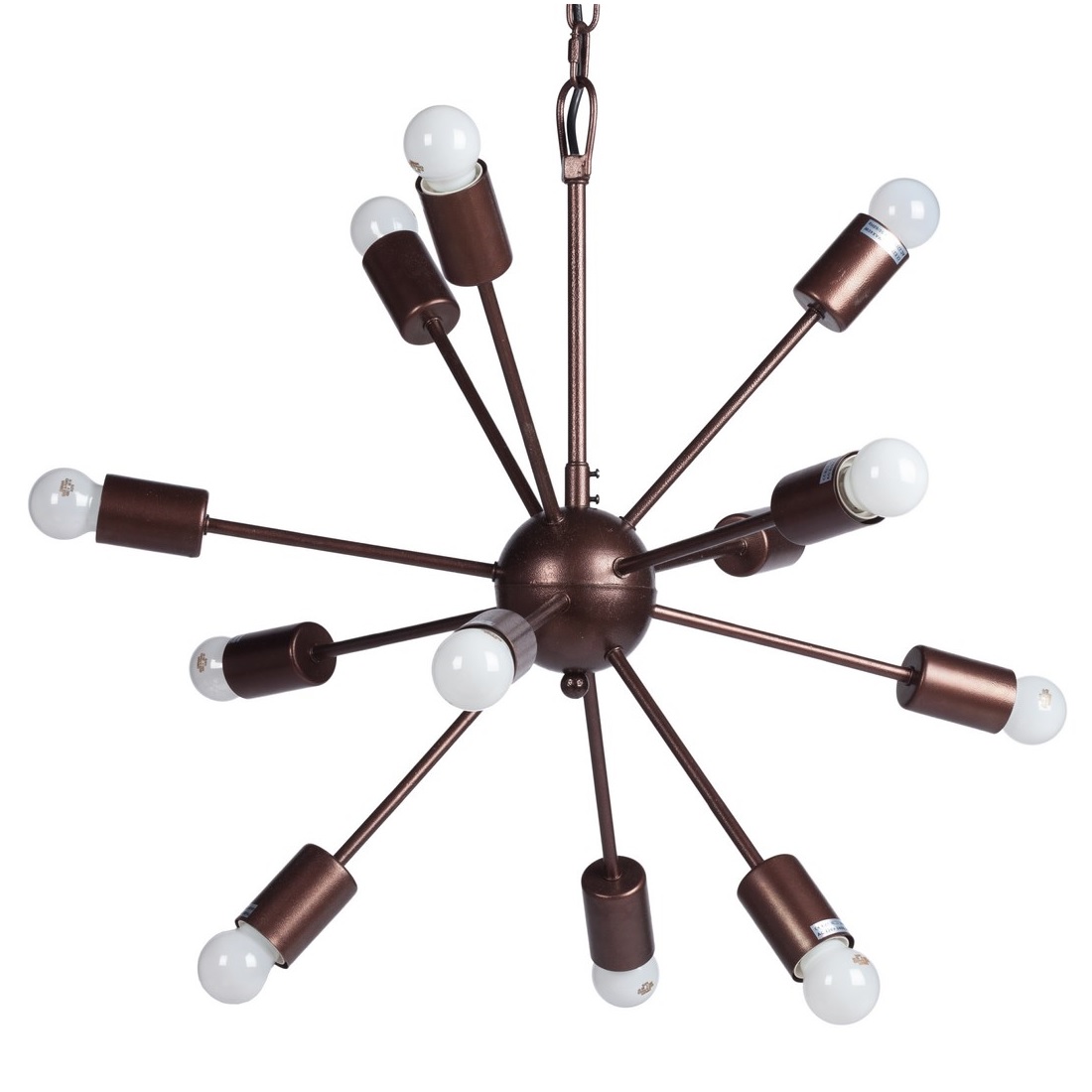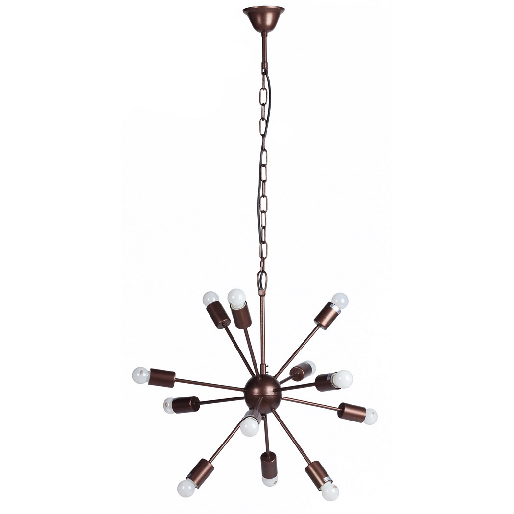 Люстра Sputnik Filament. Люстра Sputnik Filament создана для ценителей дерзких и современных решений в интерьере. Она выполнена полностью из металла темно-красного, бронзового оттенка. В центре расположен металлический шар, от которого отходят тонкие «ветки» с лампами на конце. Подвешивается люстра на крупную металлическую цепь того же цвета. Длина провода 70 см.